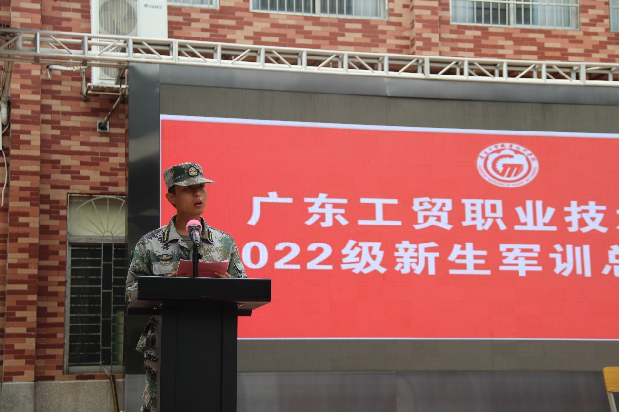 军训团参谋长朱正酬作军训发言,感谢学校对军训工作的支持和肯定。
