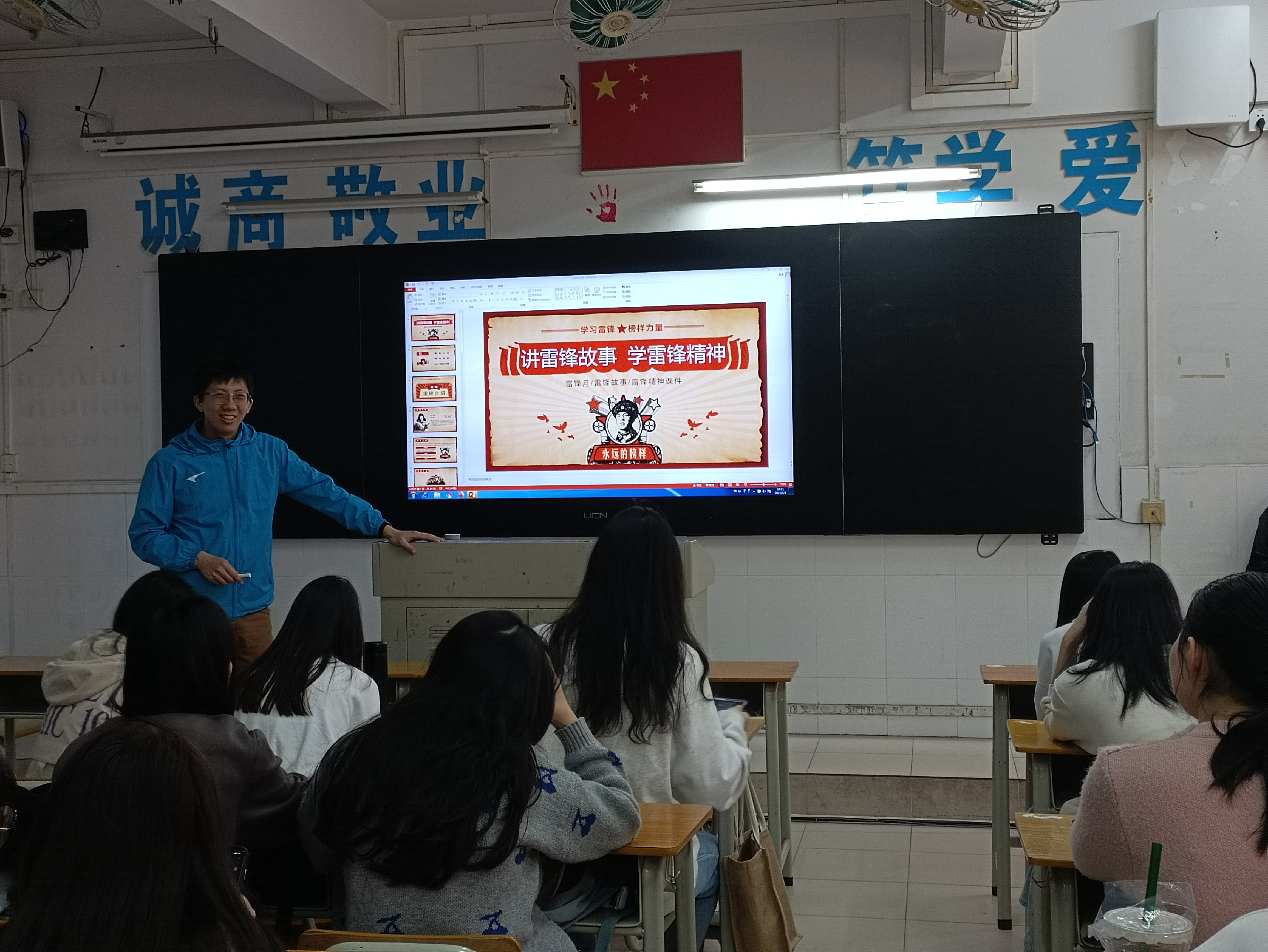 3月6日早上,艺教学院借升国旗仪式之机,开展了一次主题宣讲活动,由艺教学院青年志愿者协会许书嘉同学主讲,宣讲的主题是“传承雷锋精神,劳动铸就梦想”,号召同学们传承雷锋精神,践行志愿服务。