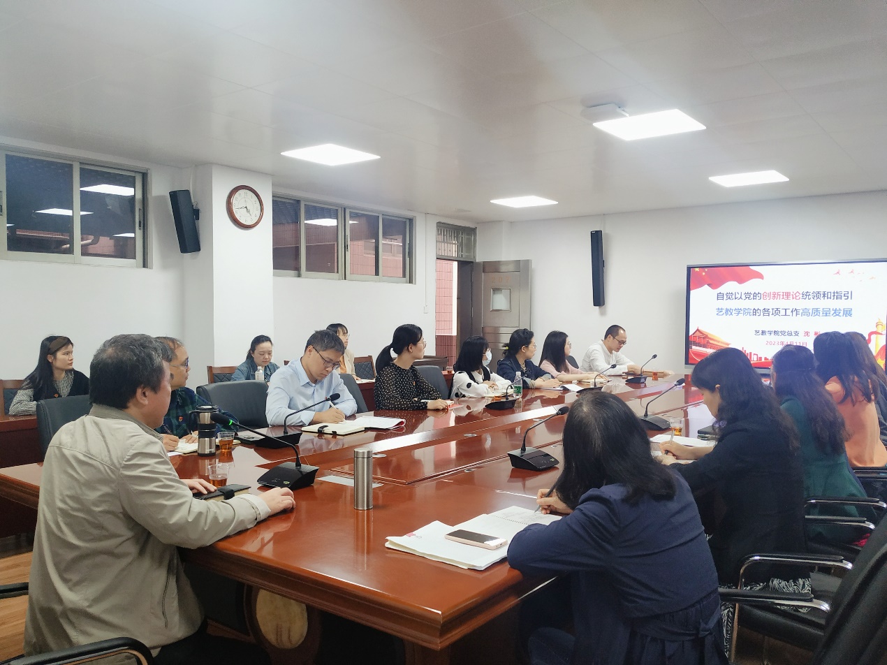 2023年4月11日下午16时,艺术与教育学院党总支部在荔湾校区笃学楼207会议室组织支部全体党员召开了支部政治理论学习会议。会议由党总支书记沈彬同志主持。