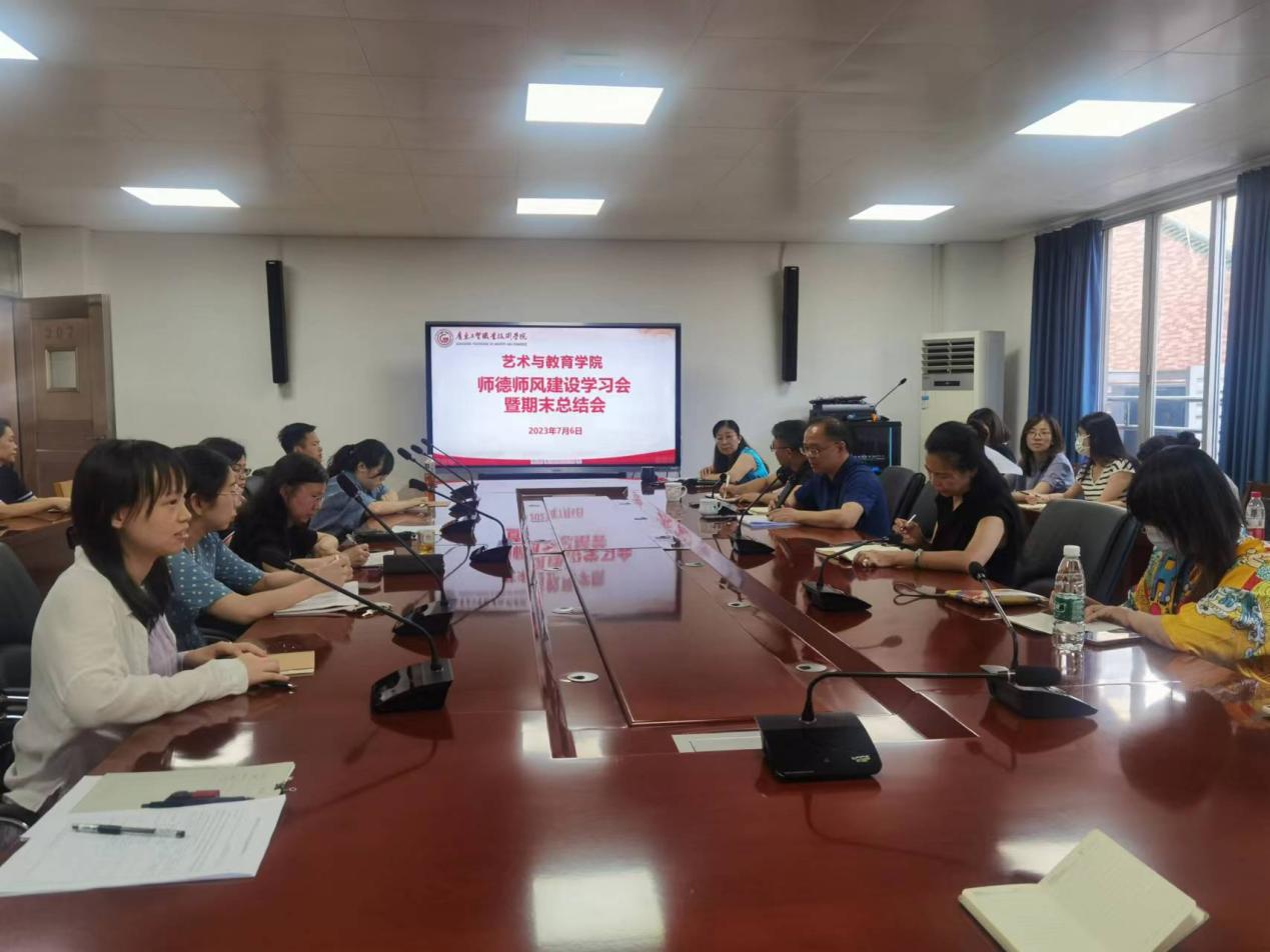7月6日上午,艺术与教育学院召开了师德师风建设集中学习会暨期末总结会。会议由党总支临时负责人叶宜同主持,全体教职工参加。
