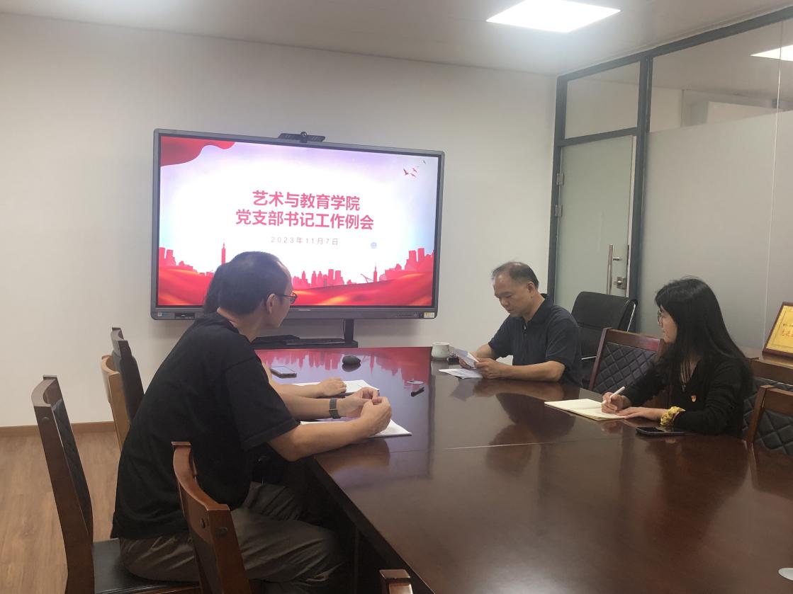 11月7日下午,艺术与教育学院在笃学楼208召开党支部书记工作例会,教师党支部书记区翠梅、副书记欧梓楠、学生党支部书记谭武、组织员肖泽娜参加了会议,会议由艺教学院党总支临时负责人叶宜同主持。