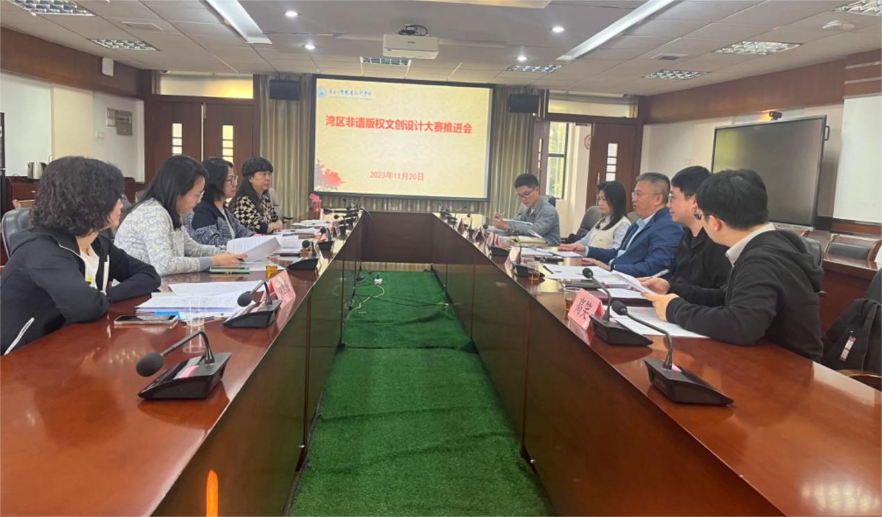 2023年11月20日,湾区非遗版权文创设计大赛推进会在天河校区举行。荔湾区委宣传部副部长周应武率队参加。会议由学校党委副书记赵红主持,与会人员包括荔湾区委宣传部理论和新闻出版科科长陈景煜、区融媒体中心全媒体科科长熊然、艺教学院临时负责人张幼晖及党委宣传部副部长林虹静。