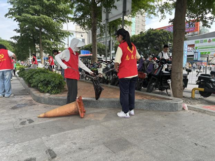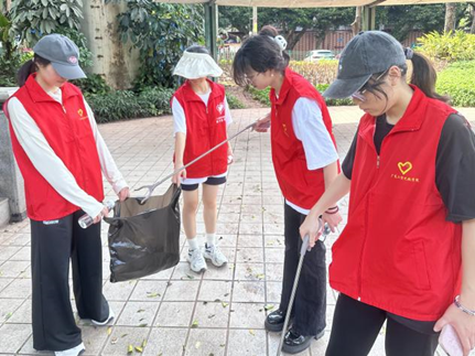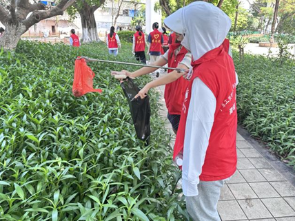 活动分三个小组,每组由一名同学带领,分别沿不同的路线进行清扫工作。第一组由丘苑青同学带领,主要负责学校正对面的绿化带清洁;第二组由威鸿允同学带领,负责清扫芳村大道西竹竿路旁的绿化区;第三组则由社区负责人带领,清扫鹅潭湾周边的绿化带。在清扫过程中,同学们充分发挥了团队协作精神,不怕脏、不怕累,用实际行动为社区的环境改善贡献了自己的力量。经过大家的共同努力,原本脏乱的绿化带和道路变得干净整洁。