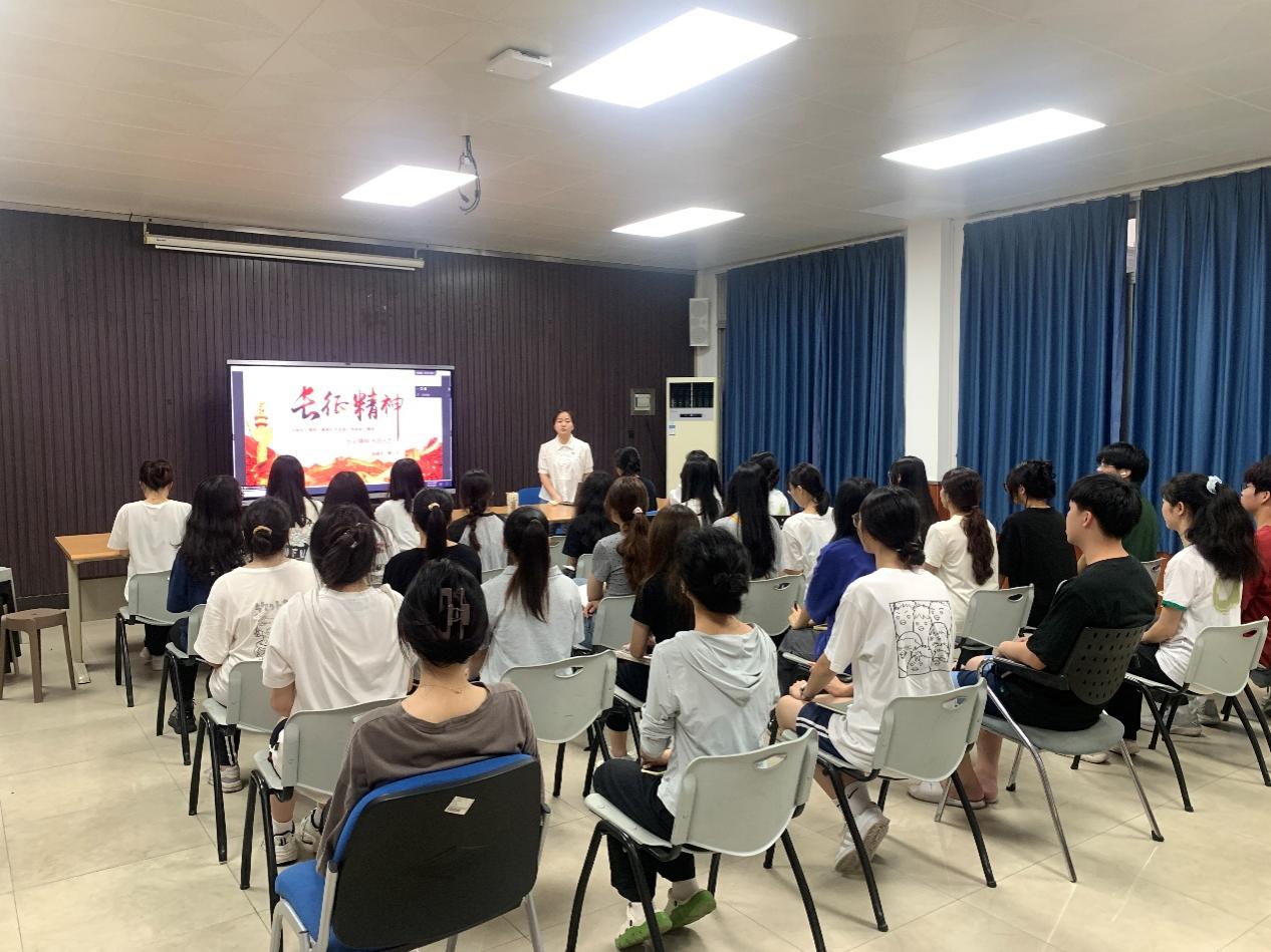 郑少丹以《长征精神》为主题进行党史宣讲,宣讲内容包括对红军长征的历史背景、重要过程和伟大意义。她指出,同学们应该共同弘扬长征精神,赓续红色血脉,传承革命先辈们伟大的奋斗精神,为实现中华民族伟大复兴的中国梦贡献自己的力量。通过对红军长征历史的回顾,学生骨干深入认识和理解了党的伟大历程和革命精神。
