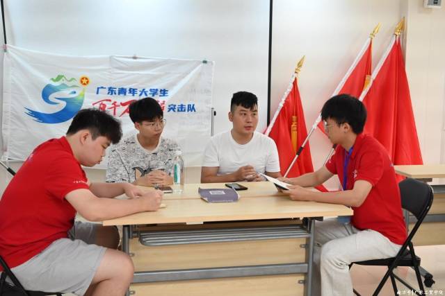 涂南画北实践队队员与管委会团委副书记黄博瀚做面对面访谈