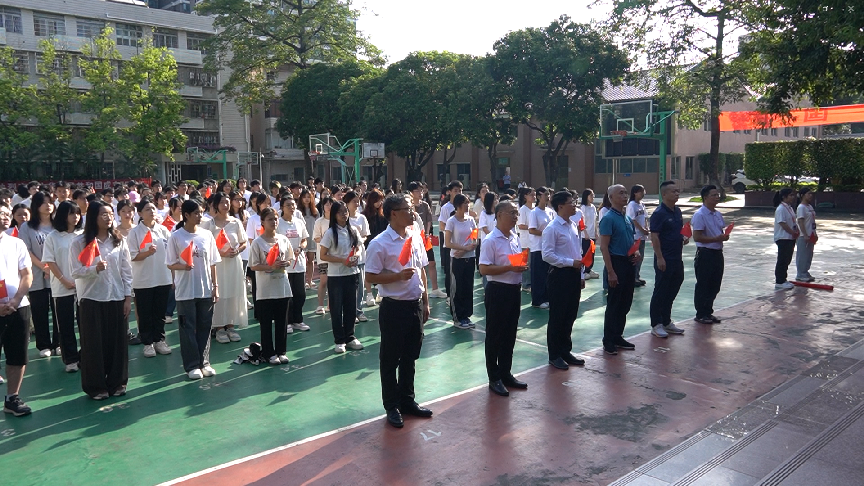 仪式开始,国旗护卫队踏着整齐的步伐,迎着晨曦,伴随着激昂的《义勇军进行曲》向我们走来。全体师生肃立,共同注视着五星红旗冉冉升起,场面庄严肃穆。