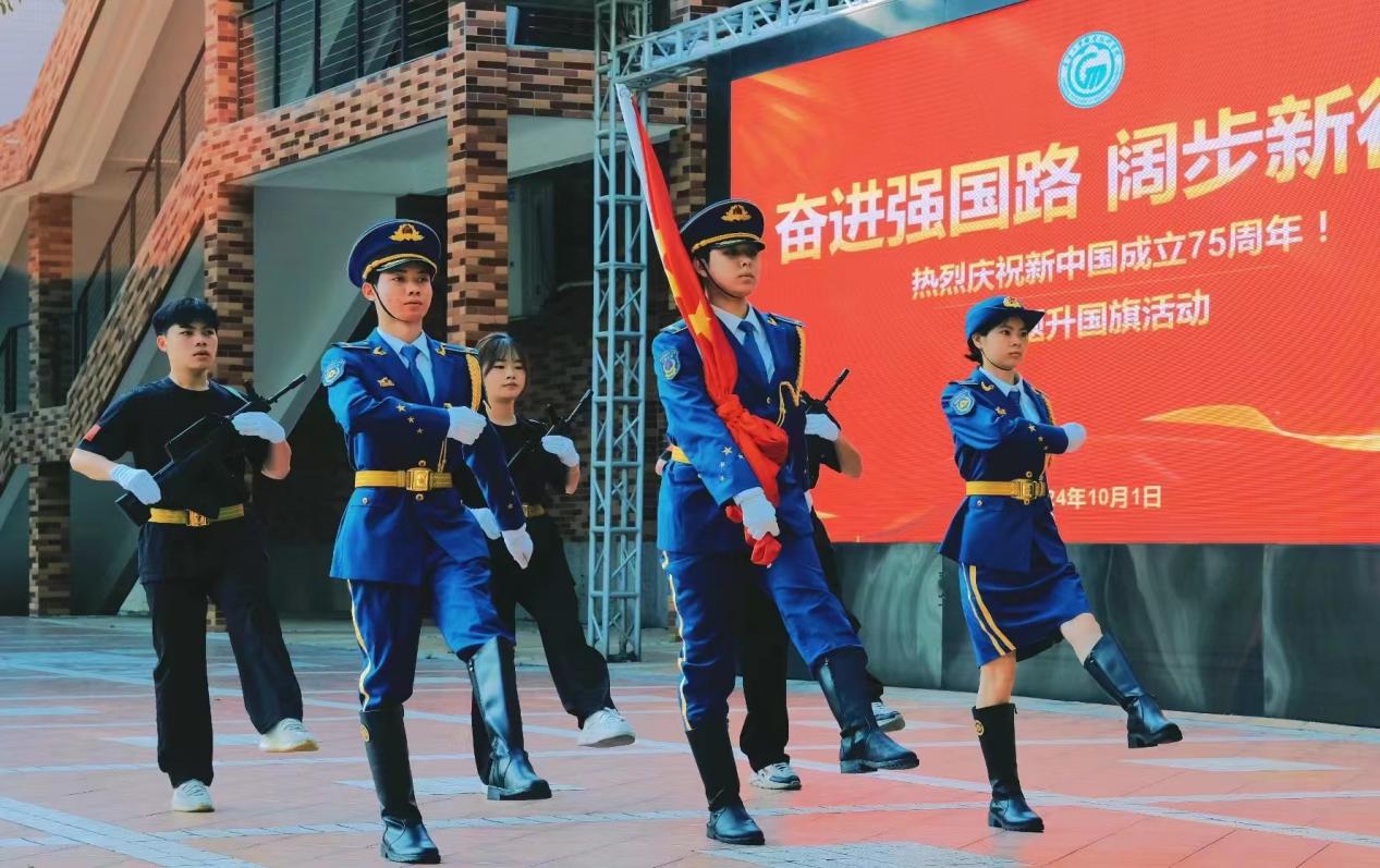 在金秋送爽、举国同庆的美好时节,我们迎来了中华人民共和国成立 75 周年的辉煌时刻。为了弘扬爱国主义精神,增强民族自豪感和凝聚力,艺术与教育学院于2024年10月1日上午8:30,在荔湾校区篮球场举行“奋进强国路,阔步新征程”国庆主题升国旗活动。学校党委委员、副校长徐勇军同志及荔湾校区师生代表出席了本次活动。
