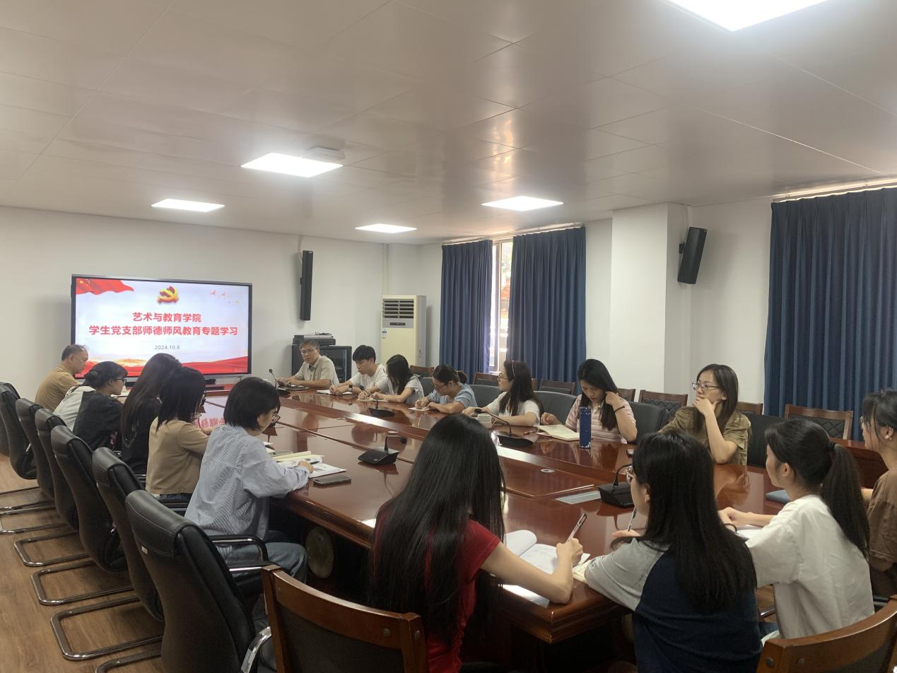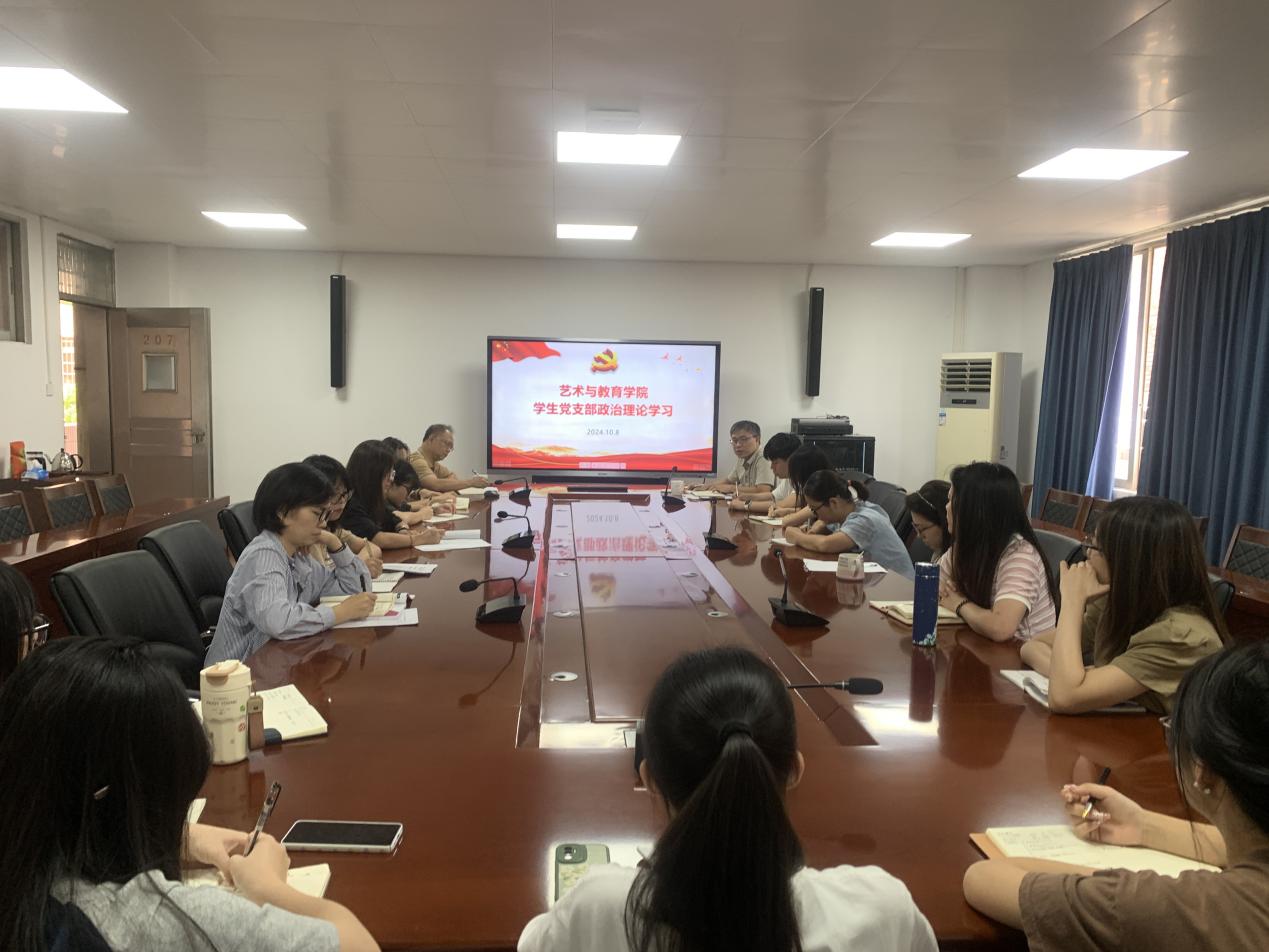 2024年10月8日,艺术与教育学院学生党支部召开政治理论学习。会议由学生党支部书记谭武主持,支部全体党员及学院党总支副书记叶宜同参加了学习。