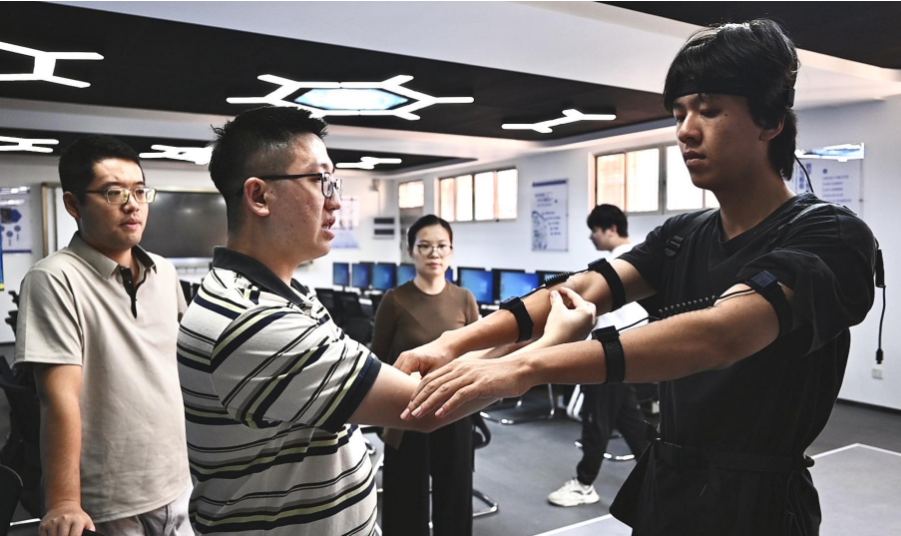 张幼晖院长带领青年教师现场交流学习动作捕捉设备使用方法