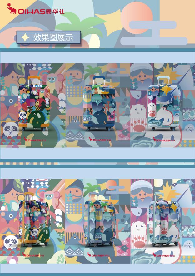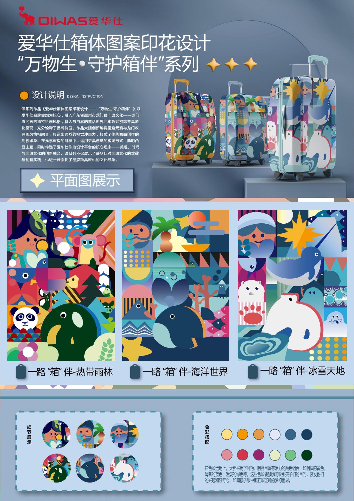 获奖作品《爱华仕箱体图案印花设计——“万物生·守护箱伴"》
