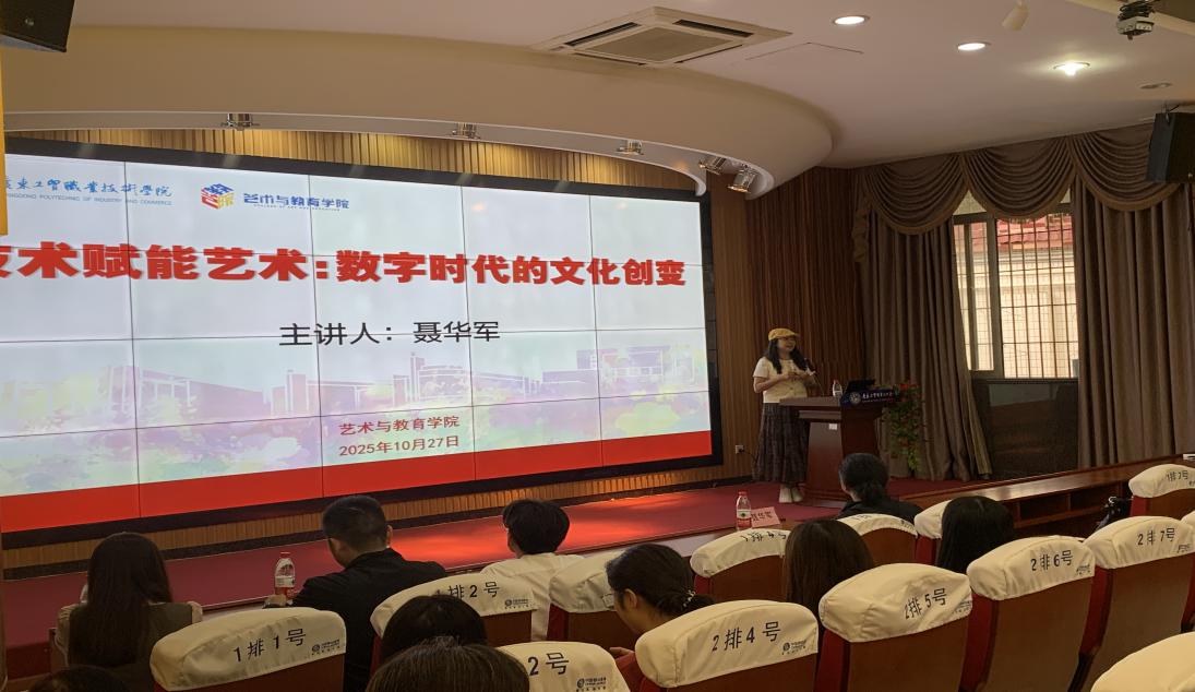 2025年10月27日,艺术与教育学院报告厅座无虚席。一场汇聚行业顶尖力量的“技术赋能艺术:数字时代的文化创变”专题讲座暨企业实战实训开课仪式在此拉开帷幕。活动特邀深圳洛克特视效科技有限公司(《哪吒之魔童降世》《长津湖》等爆款影片CG特效主力团队)创始人聂华军视效导演主讲,学院院长张幼晖、副院长彭金奇及23级数字媒体艺术设计专业师生共同见证这场“技术与艺术碰撞”的行业盛宴。