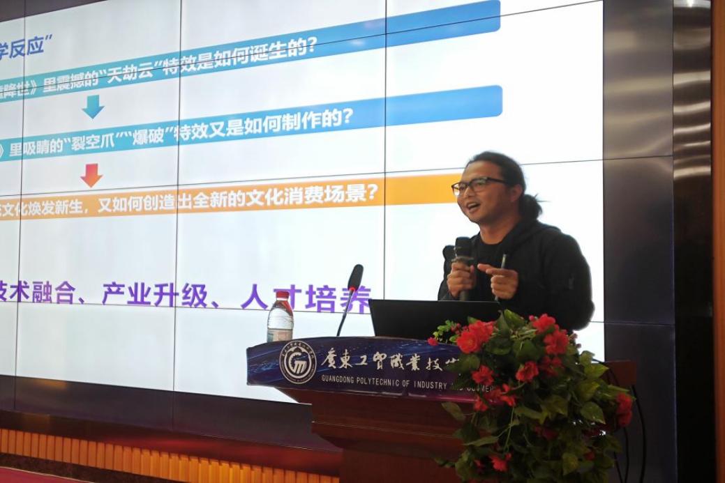 互动环节中,针对学生提出的“艺术表达与商业诉求如何平衡”,聂华军以《美人鱼》《哪吒》项目经验回应:“好作品既要‘打动人心’,也要‘经得起市场检验’。”他建议学生通过实战实训理解产业逻辑,“在真项目中学会妥协与坚持,这是成长的必经之路。”