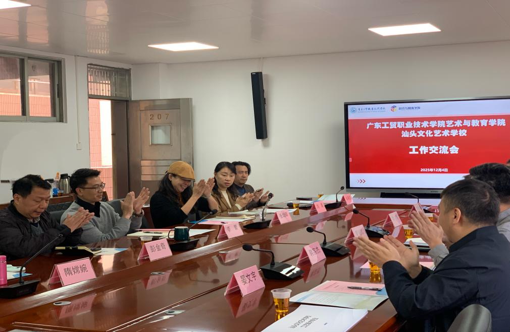 2025年12月4日,汕头文化艺术学校校长黄锐辉一行到访艺术与教育学院,双方围绕专业建设、课程优化、教学管理及中高职贯通“三二转段”等核心议题开展深度专题交流,旨在打破校际发展壁垒,实现资源共享互鉴,共同探索职业教育协同育人高质量发展新路径。