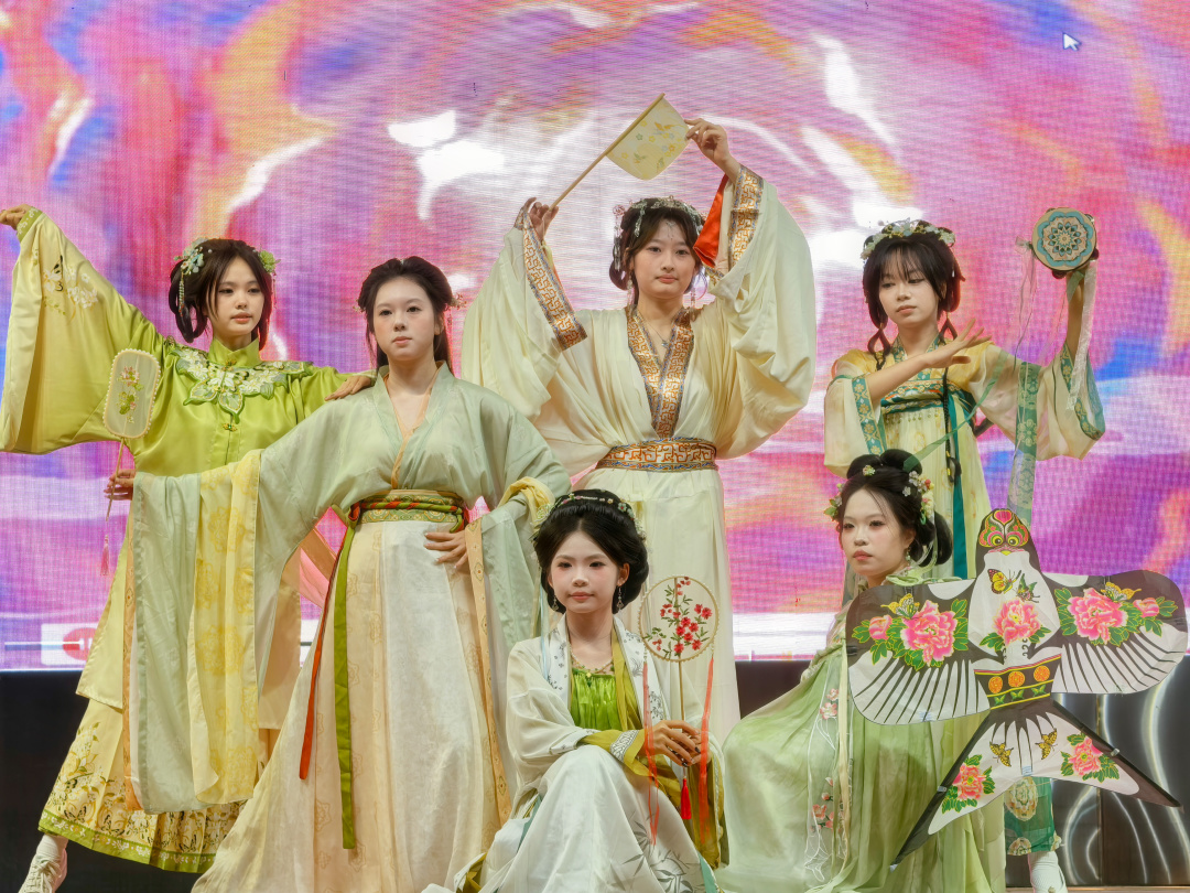 合唱团演绎的《绒花》旋律悠扬,传递青春温暖,诠释青春拼搏;24视传2班孔翔谦的原创独唱《原来长大并不快乐》,以细腻歌词与深情演唱道出成长感悟,引发全场共鸣;《繁花》的柔美、独唱《小美满》的温馨、国风走秀《锦裳承韵·国风雅集》的雅致,为晚会增添别样韵味。