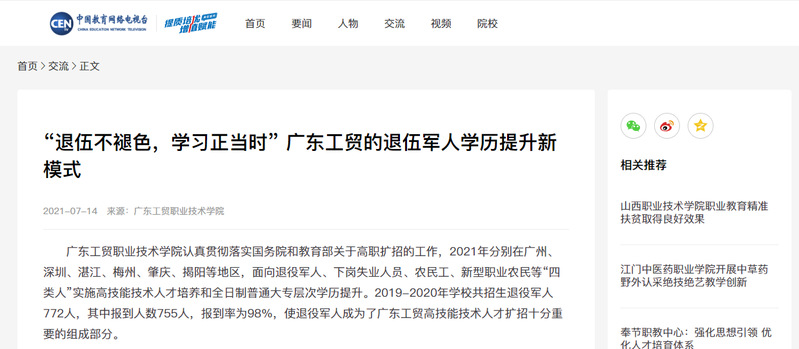 (“退伍不褪色,学习正当时”广东工贸的退伍军人学历提升新模式https://tzpy.centv.cn/article/106)