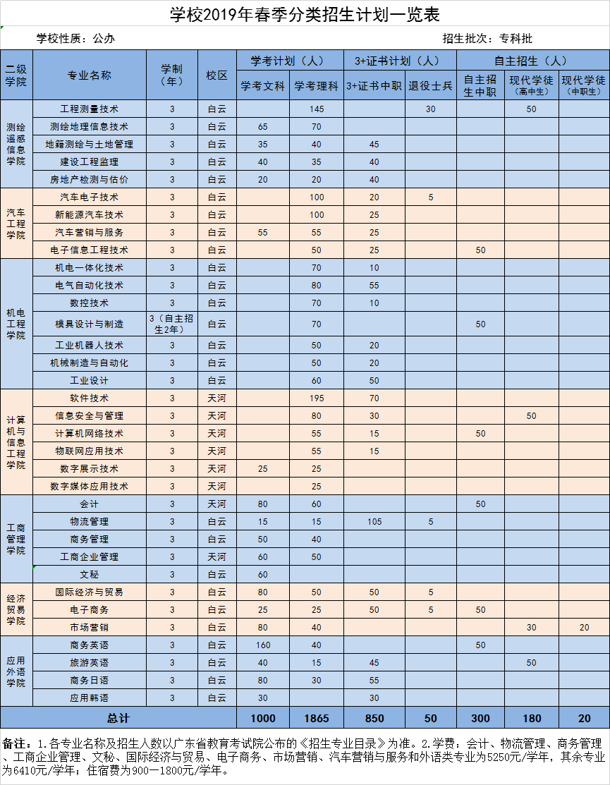 菲律宾亚星222官网2019年春季分类招生计划一览表