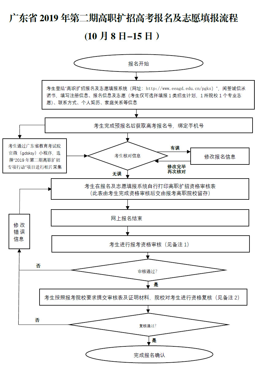 退役军人可填报高技能人才学历提升计划,符合条件的社会人员填报高技能人才学历提升计划。考生仅可根据自身实际选择1个专业进行填报。考生填报志愿后,打印《广东省2019年第二期高职扩招考生资格审核登记表》(下称“资格审核登记表”)。